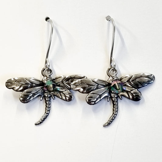 Oxidised Dragonfly Earrings — Iridescent Crystal