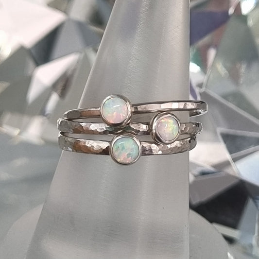 Sterling Silver and Manmade Opal Stacking Rings — 3 Variations