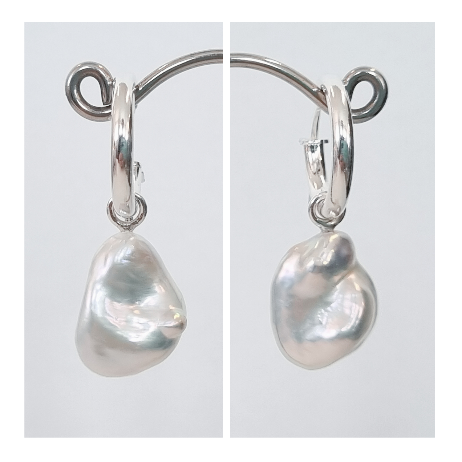 Baroque Pearl Earrings with Sterling Silver Hoops
